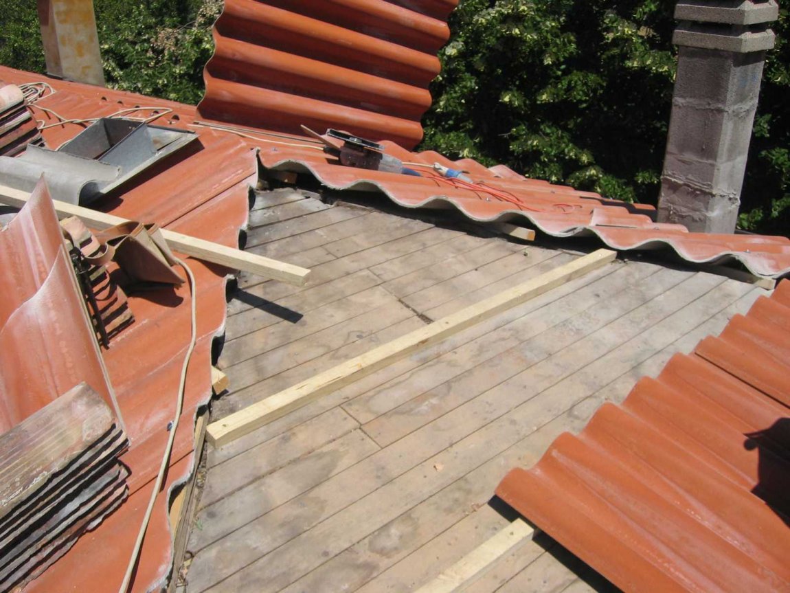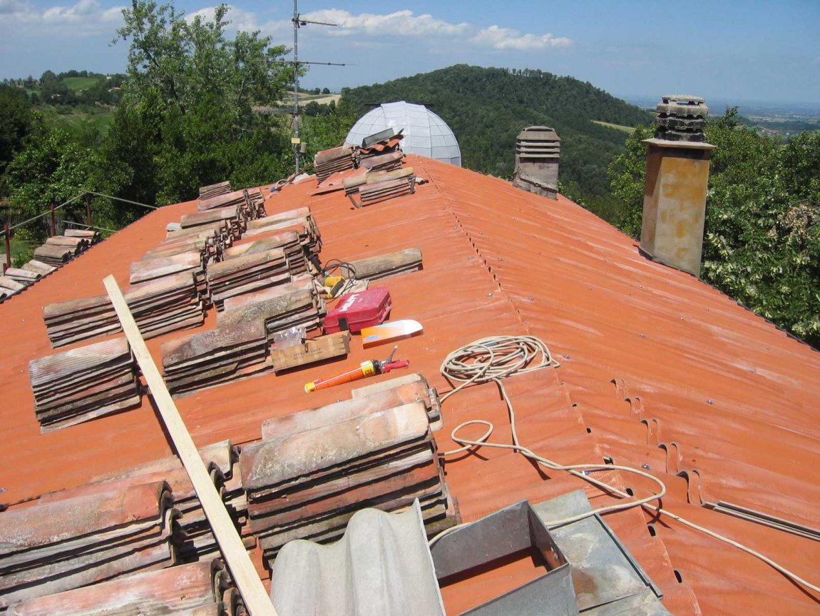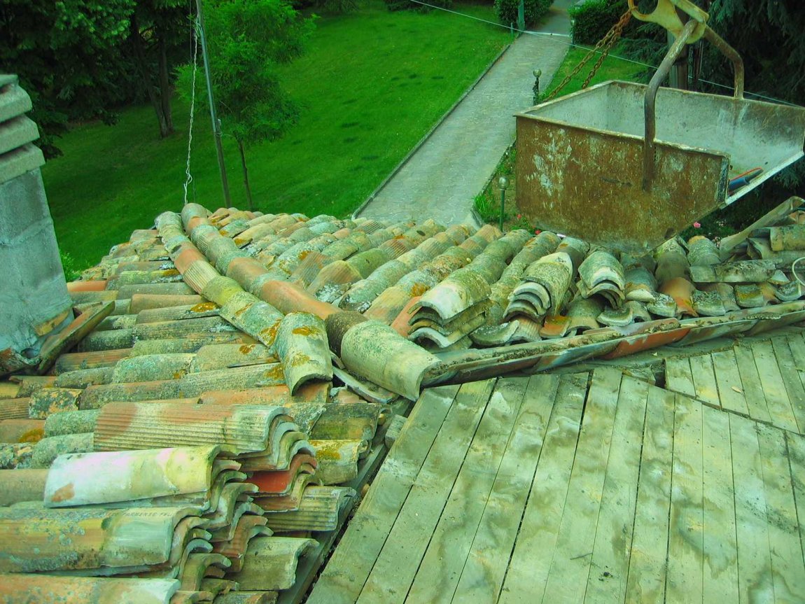 Rifacimento manto di copertura, sostituzione orditura primaria e secondaria ammallorata in legno di abete.